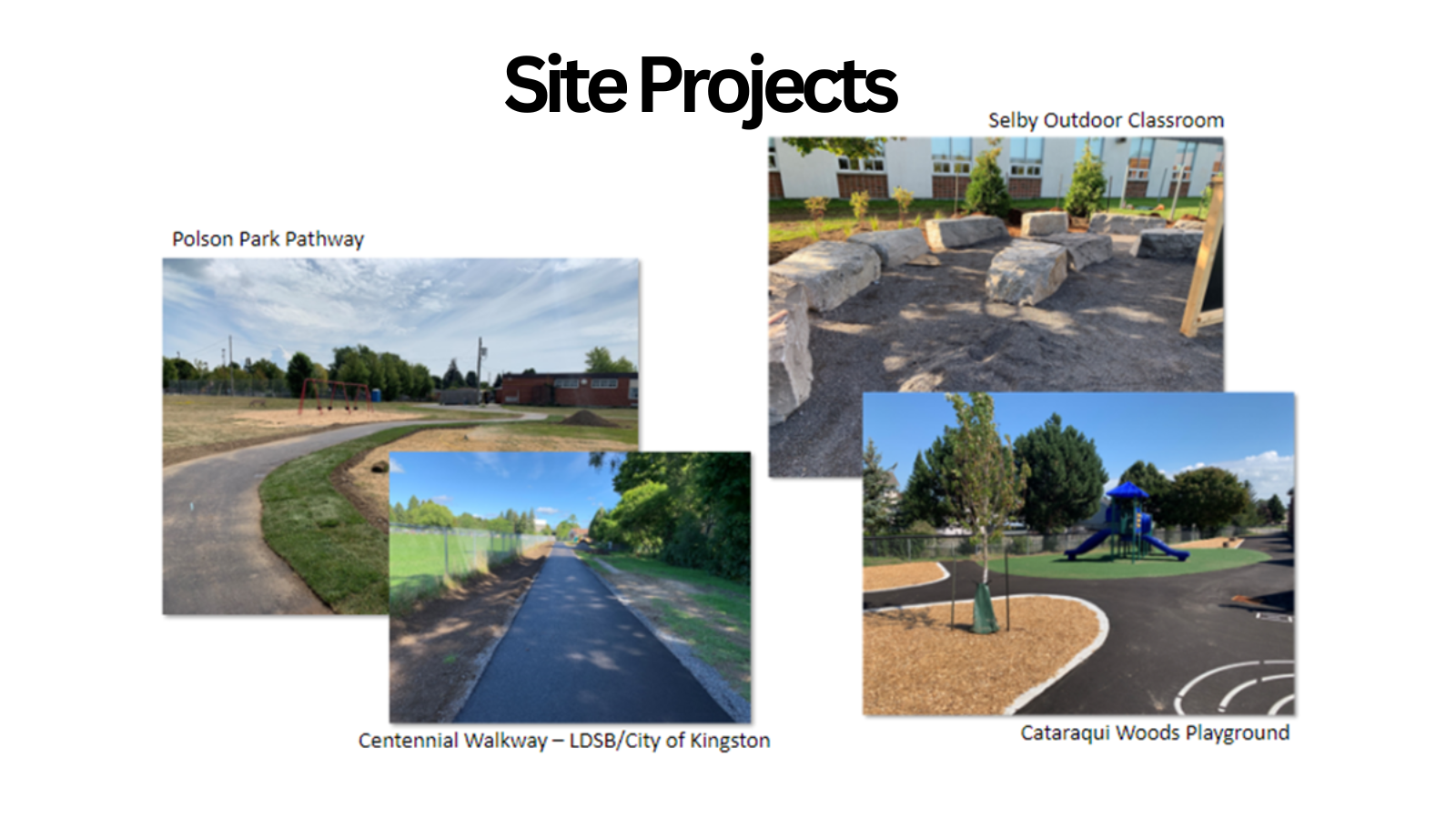 Site projects were completed at several schools, including Selby Public School, Tamworth Public School, Newburg Public School, L.C.V.I, Cataraqui Woods Elementary School, North Addington Education Centre, Bayridge Public School, Napanee District Secondary School, Prince Charlies Public School, Lancaster Public School, Ecole Maple Elementary School, J.R. Henderson Public School, Polson Park Public School, Centennial Public School, and Granite Ridge Education Centre. Many of the projects were years into the planning process, and addressed storm water management, drainage, and grading issues, replacement of worn-out components, as well as a major focus on improved accessibility (removing any obstacles and improving safety for everyone). While site improvements are underway, the Facilities Team takes the opportunity to enhance the school and student use of the outdoors, such as adding outdoor classrooms, improving playground surfaces, and walkways.
