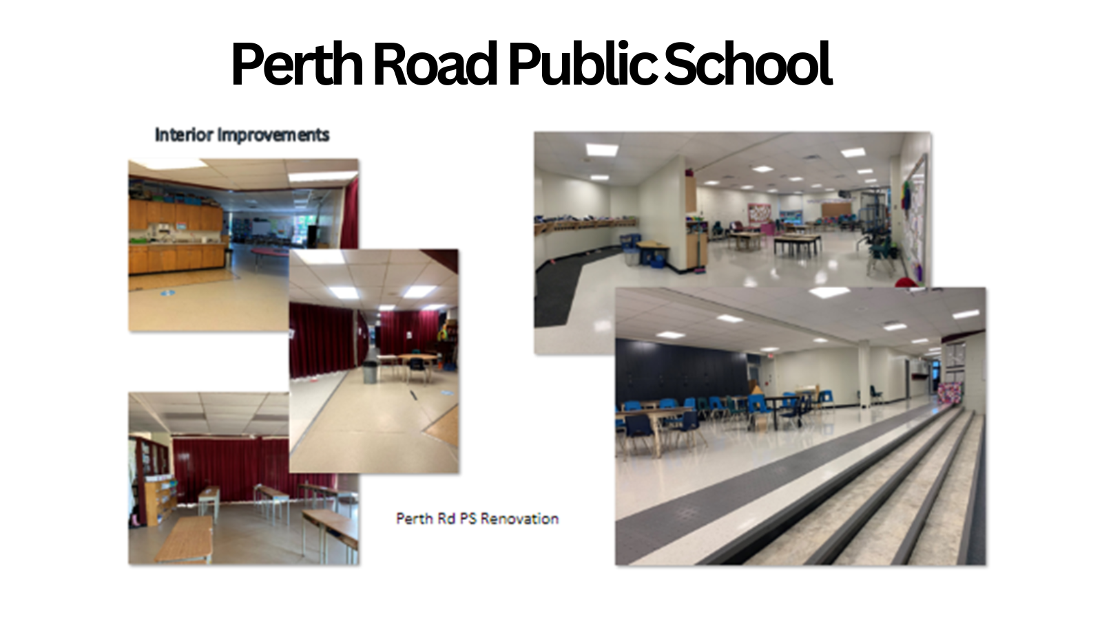 Perth Road Public School had a renovation project that provides a better layout, controls noise, and improves accessibility by adding contrasting nosing and tactile warning strips to open stairs.