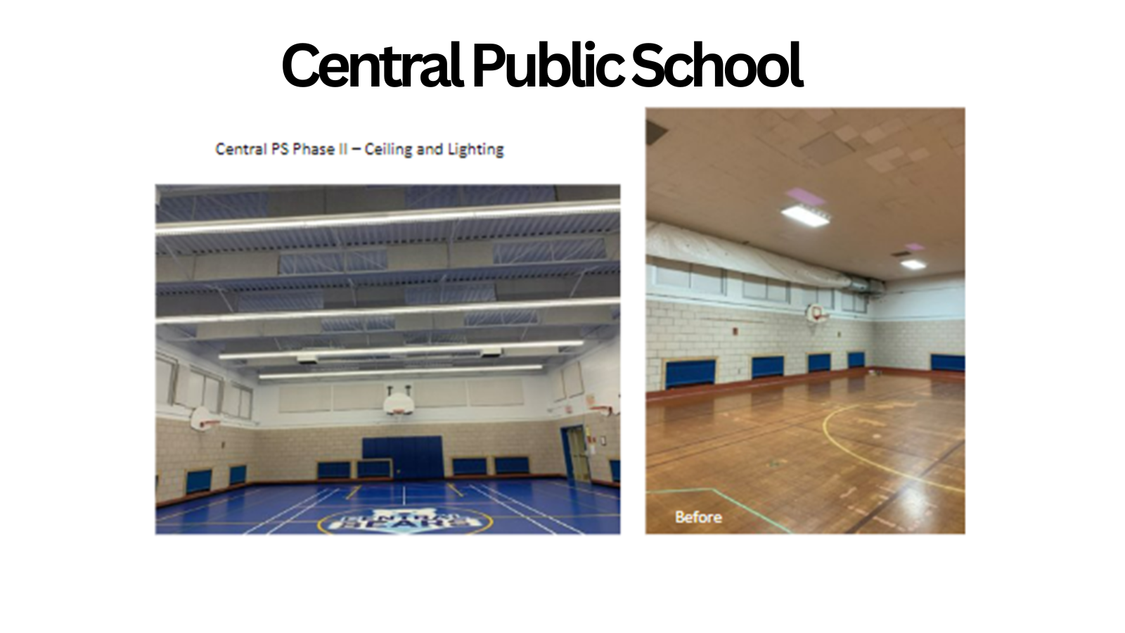 Central Public School’s gymnasium floor was redone, as well as the ceiling and lighting.