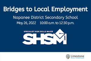 The Limestone District School Board, in collaboration with Specialist High Skills Major and Lennox & Addington Economic Development, are pleased to announce the Bridges to Local Employment Event, happening at Napanee District Secondary School on Thursday, May 26 from 10 a.m. to 12:30 p.m.